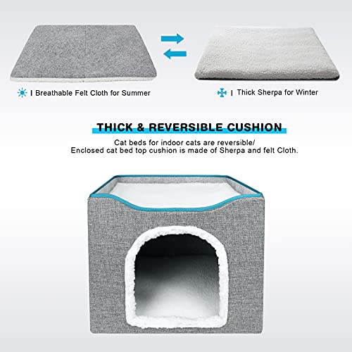 【Cuscino spesso e reversibile】Vi offriamo due tipi di casa per gatti: cuscino superiore e tappetino in pile di simil pelliccia, realizzati in tessuto sherpa spesso e caldo, e panno di feltro traspirante. Puoi usarlo sia d'estate che d'inverno.