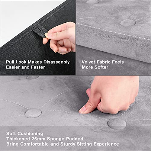 BRIAN & DANY Pouf Contenitore Velluto, Cassapanca Contenitore Cubo Poggiapiedi Sgabello, 76 x 38 x 38 cm, Grigio