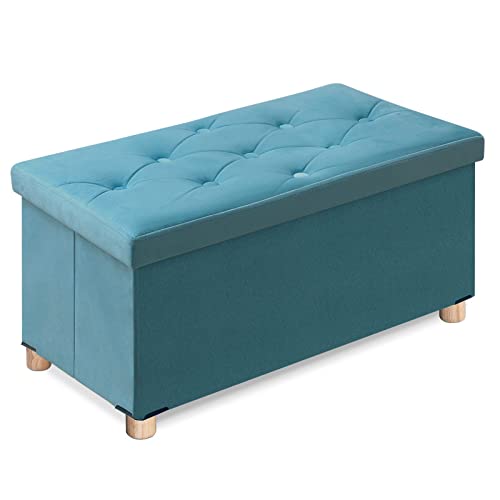 BRIAN & DANY Pouf Cubo Poggiapiedi Materiale in velluto Sgabello Contenitore Cassapanca Pieghevole con Gamba in Legno 76 x 38 x 38 cm, Verde
