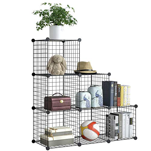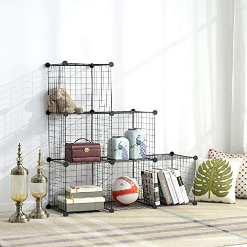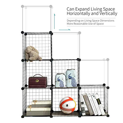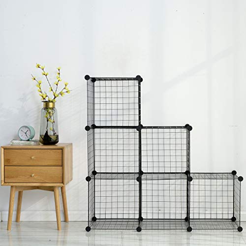 BRIAN & DANY Scaffalatura in filo Armadietto Cubi in Rete Metallica Scaffale Interconnesso Griglie Modulari 6 Cubi Scaffale Ripiani, Nero