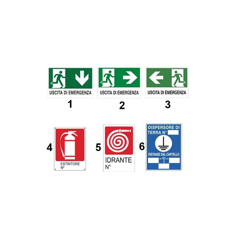 Cartelli segnalatori d'emergenza Stampa serigrafica ad altissima qualità con inchiostri resistenti agli agenti atmosferici. 1 - Emergenza A - Plastica 20x30 cm.