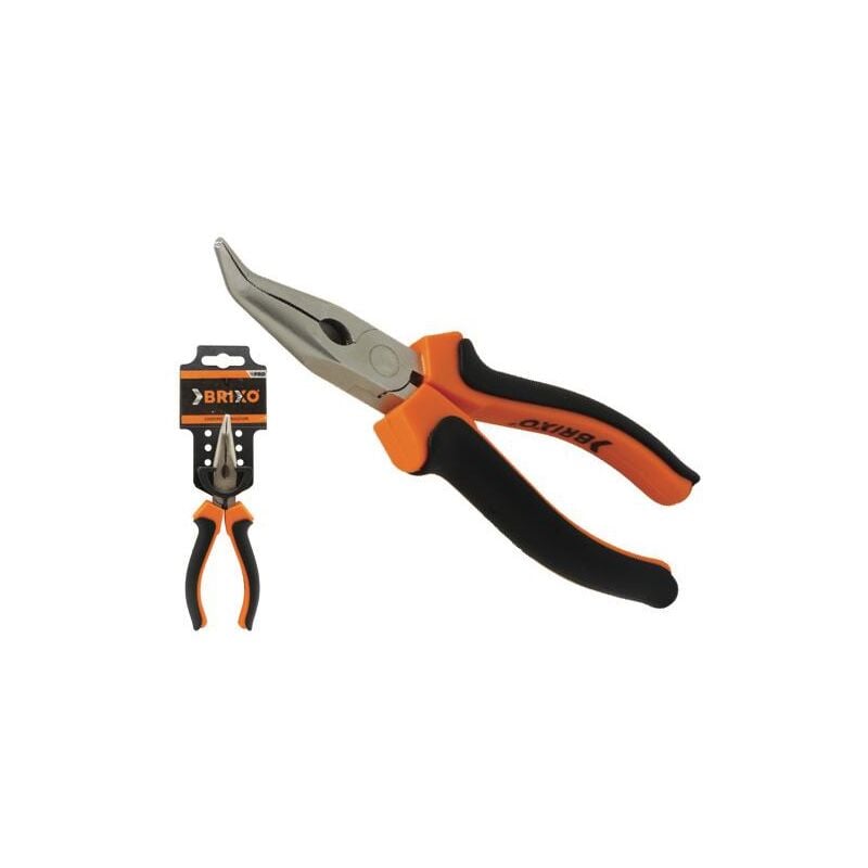 Pinze Brixo becchi mezzi tondi curvi Acciaio forgiato alta qualità (C 50), testa piatta con finitura fosfatata, manici soft-grip con impugnattura isolante in bicomponente. Lunghezza 150 mm.