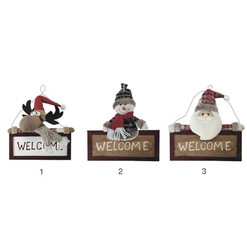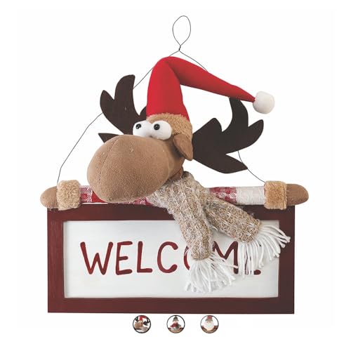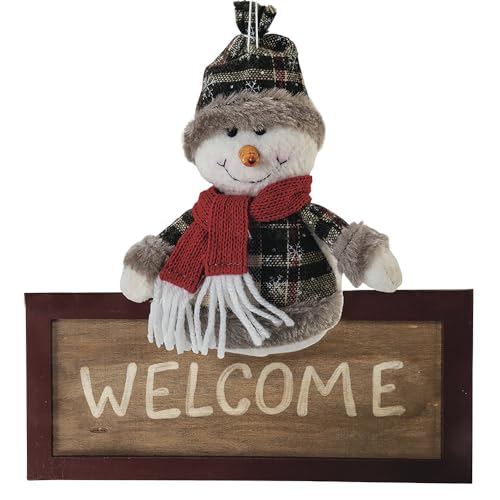 Briconess.com Fuoriporta Natalizio in Legno e Tessuto con Scritta Welcome e Pupazzo Cortina