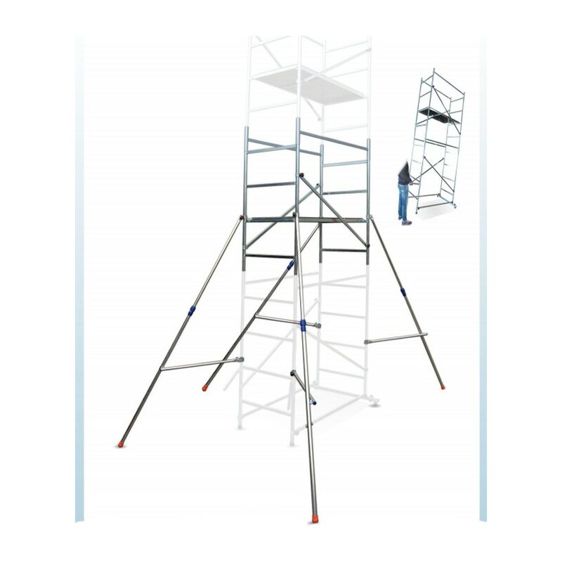 Kit Alzata Up per ponteggio Stark in vendita sul nostro sito realizzata in ferro zincato da 150 cm completo di piano di lavoro antiscivolo con botola per il passaggio. Pratiche e sicure le 4 aste telescopiche garantiscono maggiore stabilità alla struttura. Portata massima 150 Kg per piano. Conforme al D.L 81/2008. Caratteristiche Tecniche: Materiale: ferro zincato Ingombro struttura: 75x156 cm Piano lavoro con botola (LxP): 150x62.5 cm Portata per piano massima: 150 kg Dimensioni imballo (lxPxH): 190x80x17 cm - Peso: 40 kg Contenuto della confezione: 4 Aste stabilizzatrici telescopiche 2 Spalle da 150 cm 2 Orizzontali di congiunzione 2 Diagonali con ganci rapidi 1 Piano di lavoro 150x62.5 cm con botola Questo prodotto comprende il solo kit di alzata supplementare per il ponteggio Stark. Prima di acquistare questo kit devi aver già acquistato il ponteggio standard.