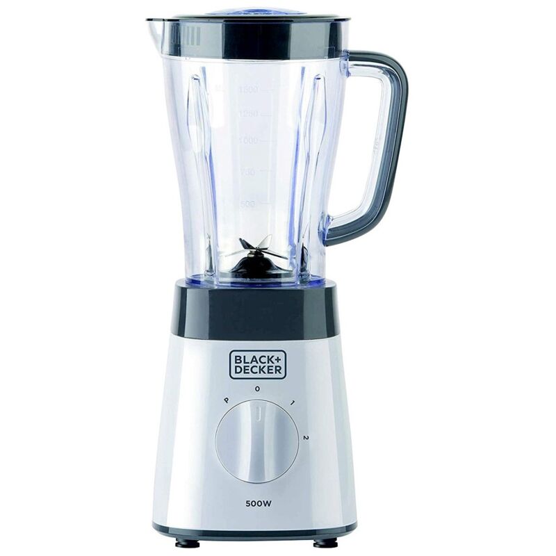 Frullatore Black Decker potenza 500 Watt con caraffa in plastica capacità 1.5 litri graduata sia in millilitri che in grammi per poter eseguire qualsiasi ricetta senza conversioni. Frullatore con regolatore di velocità in 3 posizioni, la prima velocità per frullare e miscelare, la seconda velocità omogenizza e in fine la selezionando la velocità Pulse con potenza extra potrai sminuzzare anche alimenti più duri come il ghiaccio. 4 Lame in acciaio inox due inclinati verso l'alto e due verso il basso in modo da generare una corretta rotazione e flusso alimenti assicurando un risultato omogeneo, base antiscivolo con 4 ventose che lo stabilizzano riducendo cosi vibrazioni durante l'uso dell'apparecchio. Coperchio con misurino all'interno da 50 ml e con filtro di spillatura che separa la polpa dal succo, sistema di sicurezza l'apparecchio si attiva solo se la caraffa è posizionata nella propria sede. Caratteristiche Tecniche: Colore: bianco/grigio Regolazione potenza: 3 velocità Potenza