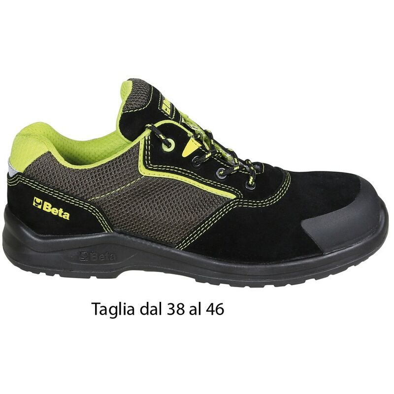 Scarpe da lavoro antinfortunistica Beta PeK S1P SRC basse rispetto alla caviglia, numeri disponibili dal 38 al 46. Realizzate con tomaia in pelle scamosciata con inserti in mesh ad alta traspirazione e rinforzo anti abrasione nella parte del puntale anteriore. Scarpe per uomo o donna, comode da indossare con suola in poliuterano bidensità, sottopiede anatomico in carbon, punta in materiale polimerico resistenza 200 Joule e antiperforazione fibra composita con trattamenti ceramici. Le calzature di sicurezza sono studiate per poter essere usate anche nelle condizioni di lavoro più ardue, per ogni tipo di professione, e soprattutto nel settore dell'edilizia e nell'industria petrolifera e farmaceutica. Il puntale davanti è inserito per offrire alla punta del piede la massima protezione possibile in una eventuale caduta accidentale di un oggetto sul piede. Luso di scarpe o stivali antinfortunistici è obbligatorio nella maggior parte dei casi, come requisito speciale da parte della