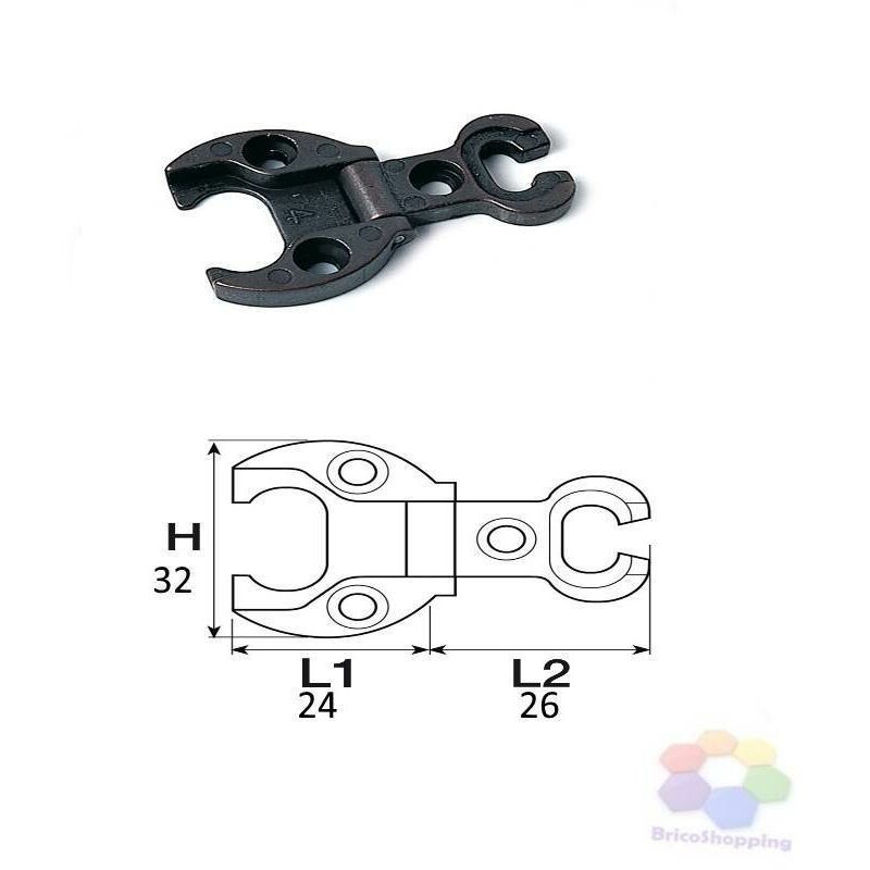 Cerniera in zama per ante in luce. CERNIERA ART.415 MM.24 ANTICATA H: 32 L1: 24 L2: 26