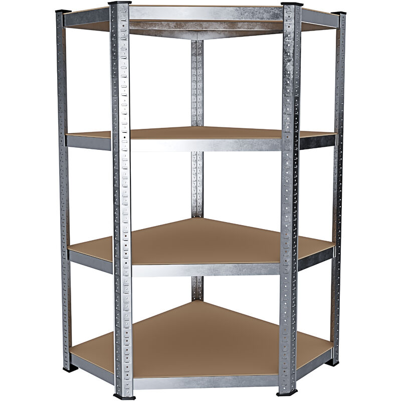 Scaffalatura angolare Raymond con 4 ripiani in metallo e MDF. Ideale per garage, officine, cantine o magazzini. La sua struttura ortogonale le permette di essere montata perfettamente ad ogni angolo, gestendo al meglio ogni spazio. Grazie alla sua alta portata di 700 kg è in grado di immagazzinare qualsiasi tipo di oggetto. Di facile montaggio grazie alla struttura senza bulloni (Push-fit) che può essere montata senza l'utilizzo di attrezzi. Caratteristiche principali: - Dimensioni totali: 160 x 70 x 40 cm (Altezza x larghezza x profondità) - Portata massima: 700 kg - 4 Ripiani realizzati in MDF - Ripiani regolabili in altezza - Antiruggine - Costruzione senza bulloni - Struttura in ferro - Adatto per immagazzinare qualsiasi tipo di oggetto Contenuto della confezione: 1X Scaffalatura angolare con 4 ripiani 1X Manuale di montaggio