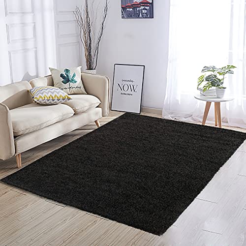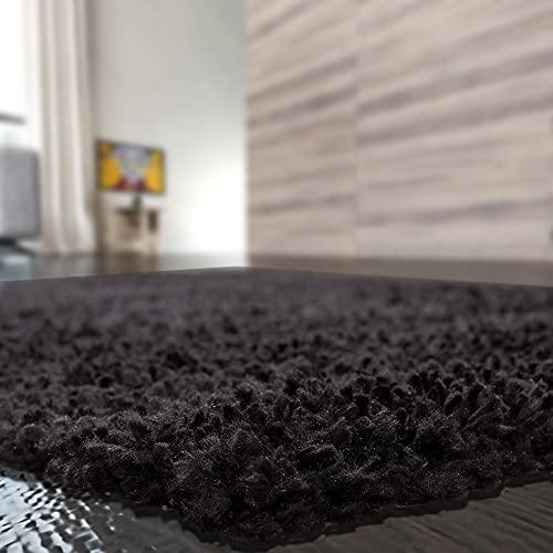 Bricozone Shaggy - Tappeto A Pelo Lungo in Diversi Colori E Misure, (Nero, 160 x 220 Cm)