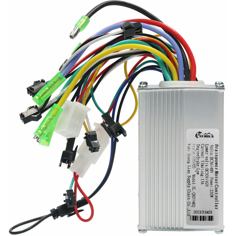Il motore di azionamento del motore brushless si avvia in modo più fluido e rende la guida più confortevole. Caratteristiche: Il controller del motore brushless fornisce una velocità costante e un controllo sensibile della frenata e dei cambi di direzione . < La scatola di controllo in lega di alluminio può proteggere il circuito interno con la buona funzione di dissipazione del calore per evitare il sovraccarico termico. I cavi e le interfacce garantiscono un basso malfunzionamento per un uso a lungo termine. L'azionamento elettrico brushless è adatto per la maggior parte delle e-bike e degli e-scooter. . Specifiche: Potenza: 250 W / 350 W (opzionale) Tensione: 36-48 V Corrente: 13 A Tensione inferiore: DC 30V/42V Angolo di fase motore adatto: 120°/60° Materiale: lega di alluminio Dimensioni: 90*52*30mm/3.5*2.0*1.2in Peso confezione: circa 196 g ste: 1 * Controller senza spazzole