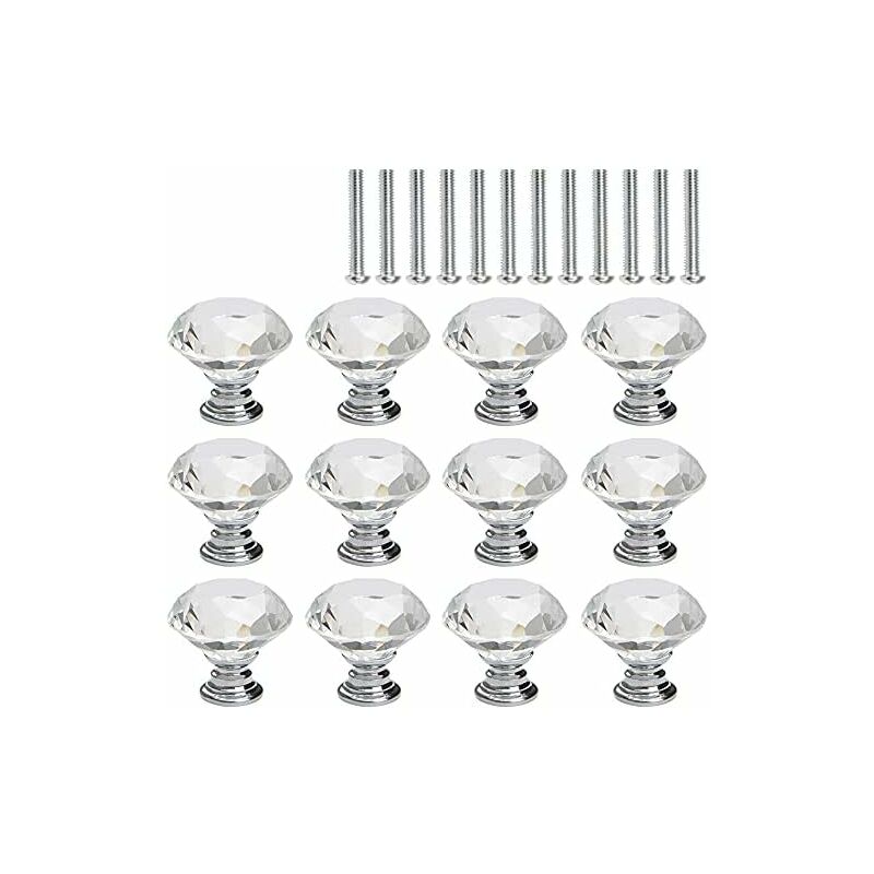 Diametro: 1,18 pollici/30 mm Taglia forme lisce, comode e facili da tirare o spingere 1Tipi di viti -- 25 mm, La confezione include: 12 pomelli diamantati per armadietto;