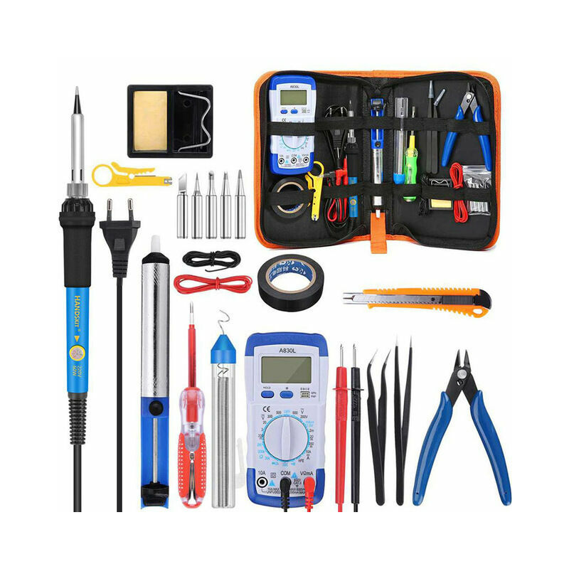 Interruttore ON/OFF più sicuro aggiornato - - Questo saldatore ha un interruttore ON/OFF per risparmiare energia e garantire la tua sicurezza. Devi solo spegnerlo se non vuoi usarlo. Il gel di silice isolante sul ferro ha una resistenza alle alte temperature per proteggere efficacemente la tua mano durante la saldatura. 【Kit kit di saldatura avanzato con multimetro】 - Il multimetro digitale avanzato con ampio display LCD facilita il test e la lettura dei dati. Facile da usare, la funzione di mantenimento misura la tensione CC e CA, la corrente CC e CA, la resistenza, il diodo e il test di continuità. 【Cacciavite di precisione 8 in 1 a vite 1】 - L'8 in 1 1 cacciavite a pacchetto di precisione ha 8 multi-bit all'interno e la base è magnetica in modo da non perdere facilmente le viti. efficiente. 【Ampia gamma di usi】 - Questo kit saldatore di alta qualità è ampiamente utilizzato per circuiti di saldatura, scheda madre del telefono, saldatura di gioielli, saldatura, riparazione di orologi