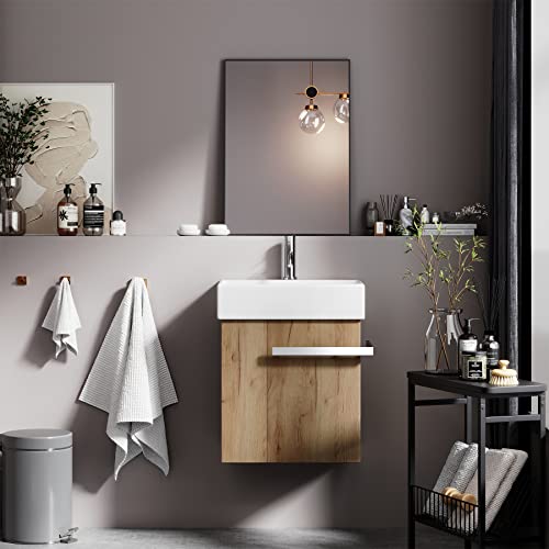 BRIDGE BENO Mobile da Bagno con Lavabo e Cassetto per Piccolo Spazio, Set da Toeletta a Muro in Legno (ROVERE EUROPEO)
