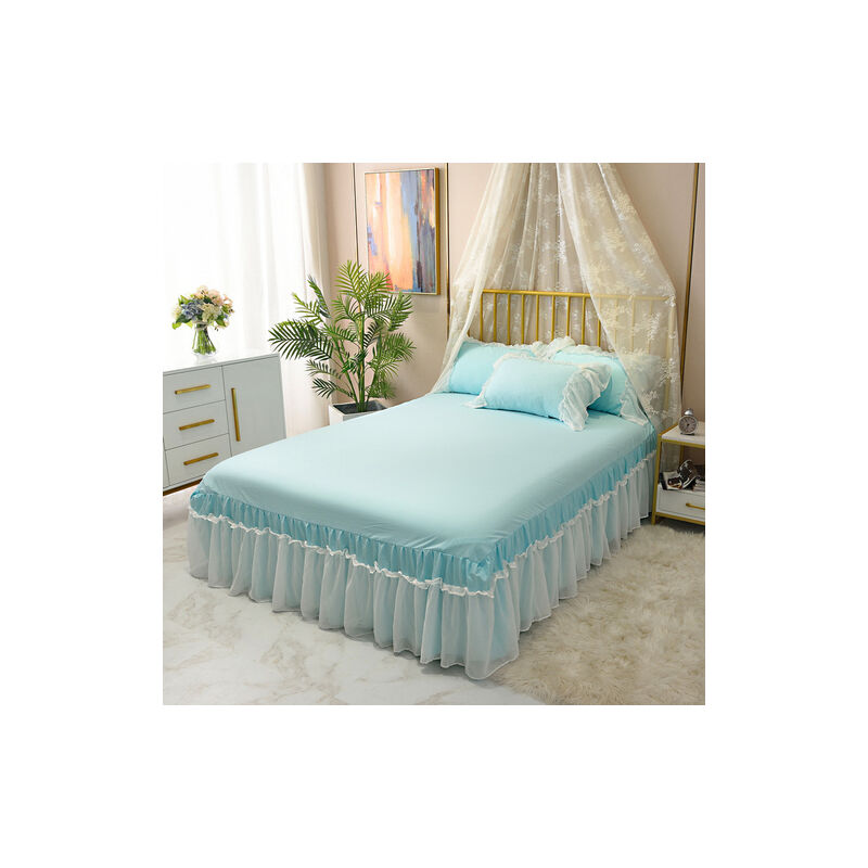 Brief white bedspreads queen 100% cotton ruffle lace king size bed cover princess bed cover bedroom bedding,blue,150x200cm bed