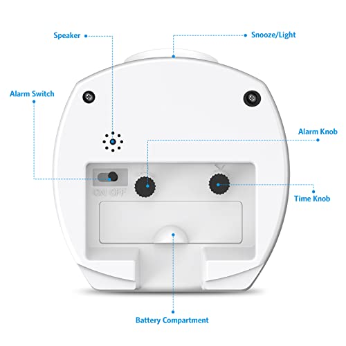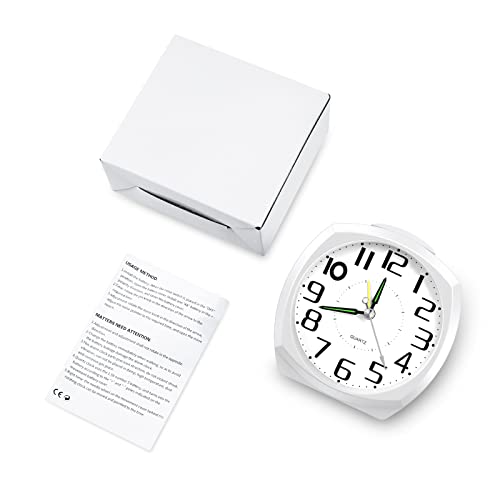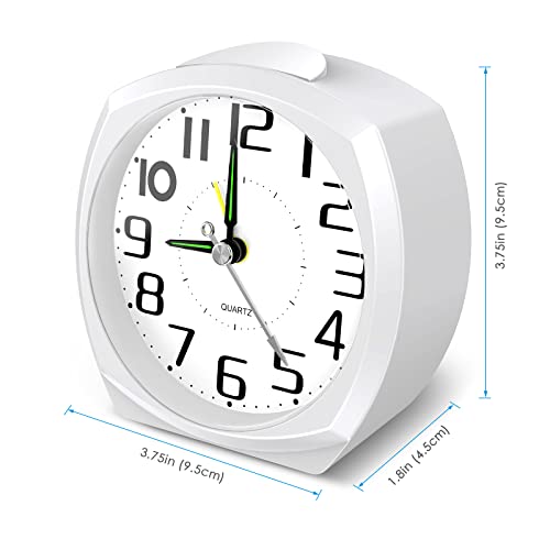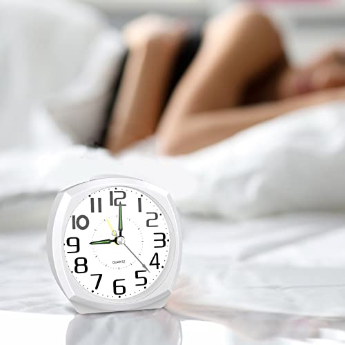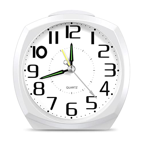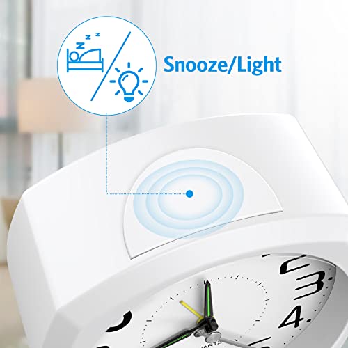 Brifit Sveglia Analogica, Sveglia Silenziosa, Sveglia da Comodino, Sveglia Mattutina, Piccola Sveglia, Sveglia a Batteria, Luce, Puntatore Luminoso, Senza Ticchettio, Funzione Snooze, Bianco