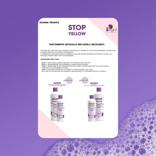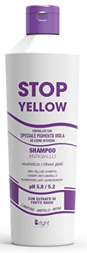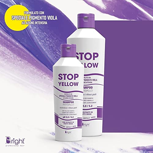 Bright Stop Yellow Shampoo Antigiallo Professionale per Capelli Biondi, Decolorati, con Méches, Grigi, con Estratti di Frutti Rossi, Neutralizza i Riflessi Gialli