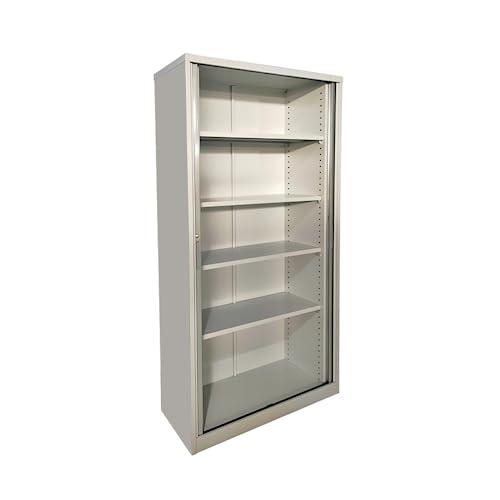 Brigros - Armadietto Metallo Scaffale Con Ante Scorrevoli, Armadio Salvaspazio Per Ufficio O Archivio, Armadio Con Serranda In Acciaio Con Serratura (100x45x198, Grigio)