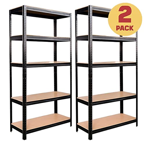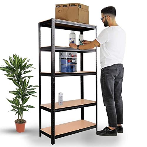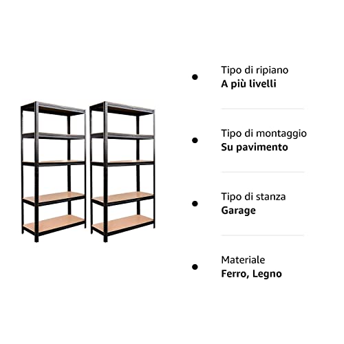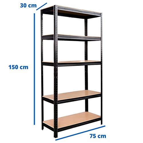 Brigros - Scaffale metallico 5 ripiani - alta portata fino a 875Kg, capacità di carico ripiano 175 Kg 150x75x30 cm (2) (Nero)