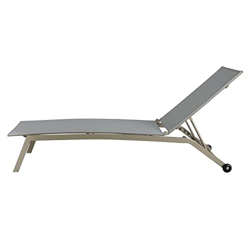 BRIGROS La voglia di fare Estosa - Oasi Lettino con ruote disponibile in diverse colorazioni, struttura in acciaio e verniciatura in polvere, seduta e schienale in textilene (Ecru)