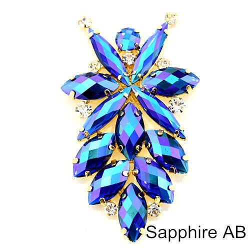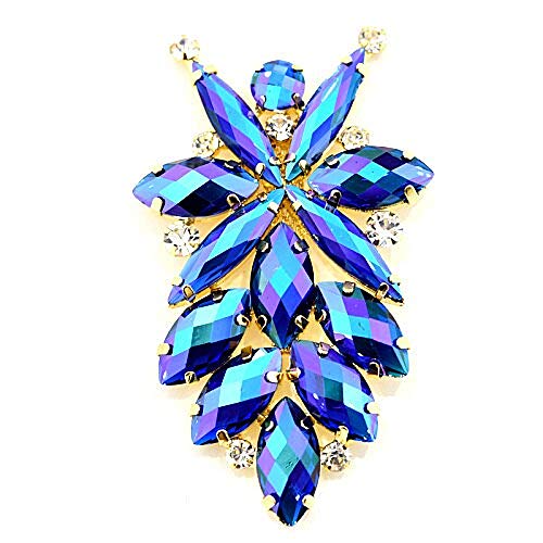 Brillabenny Applicazione Decoro Pietre CASTONI da Cucire Cristallo Strass Vestito Abito Pattinaggio Cerimonia (7x4 CM, Blu AB)