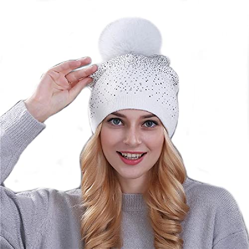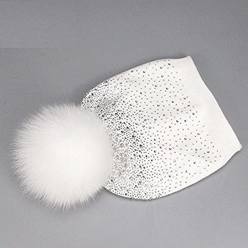 Brillabenny Cappello Cuffia Cristalli Strass PON PON Pelliccia Donna Berretto Hat Fur Luxury Neve Sci Regalo (Bianco)