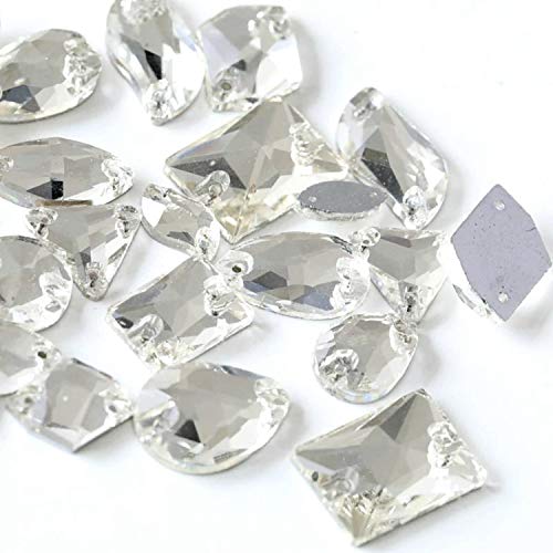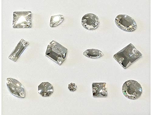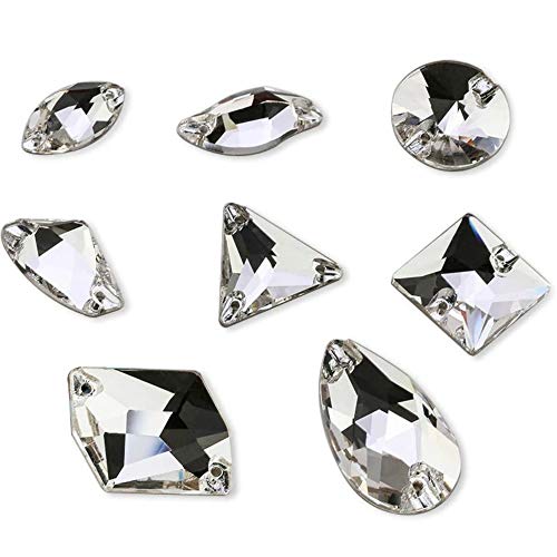 BrillaBenny Pietre Cristalli Strass da Cucire Trasparenti Mix da Cucito Due Fori Goccia, Quadrato, Rettangoli, Tondi Pattinaggio Decori Abito Danza Sposa Cerimonia (140 Pezzi)
