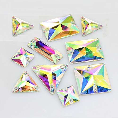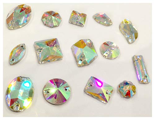 Brillabenny Pietre Strass da Cucire Aurora BOREALE Mix Pietra 2 Fori da Cucire AB Crystal Goccia Quadrato Fiore Baguette Tondi Ovali (140)
