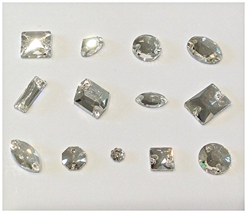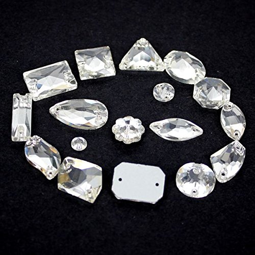 BrillaBenny Mix 50 Pietre Strass da Cucire Trasparenti 2 Fori Crystal Goccia, Quadrato, Fiore, Tondo, Decori Pattinaggio Abito Cerimonia