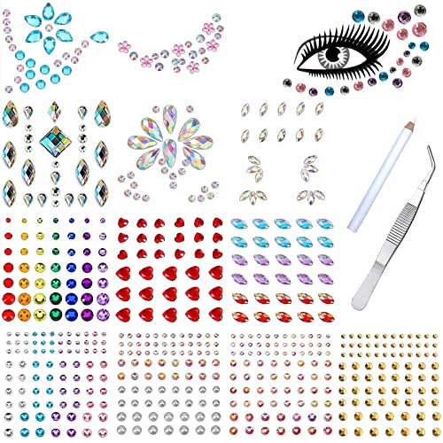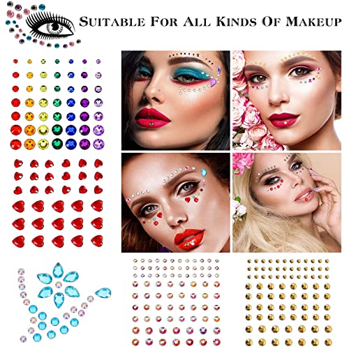 Brillantini Adesivi di Gemme per Viso Brillantini Make Up Adesivi di Gemme Corpo Occhi Strass Adesivi Strass Autoadesivi Gemme per Viso Accessori per Festival Decorazioni Nail Art 12 Fogli