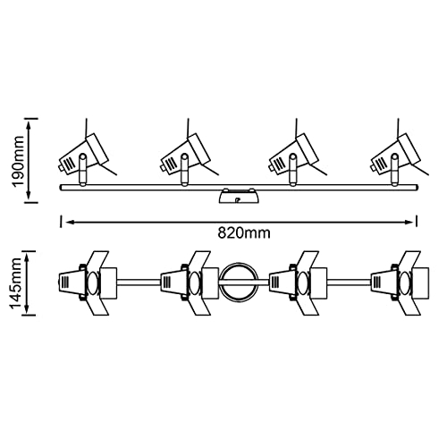 BRILLIANT lampada Movie Spot spot a LED 4 luci nero opaco | 4x LED-PAR51, GU10, lampade a riflettore LED da 5W incluse, (380lm, 3000K) | Scala da A ++ a E | Testa orientabile