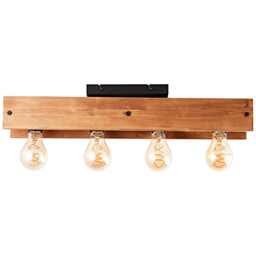 Brilliant lampada, plafoniera Calandra 4 fiamme nero/color legno, 4x A60, E27, 42W, legno proveniente da foreste sostenibili (FSC)