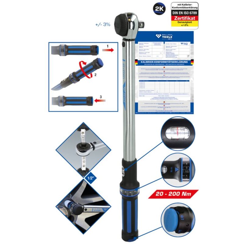 1/2 Strumenti brillanti Chiave di coppia con testa di rilevamento a manopola rotante, 40-200nm