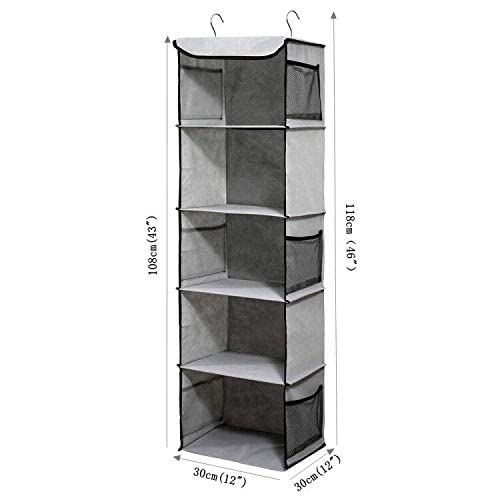 BrilliantJo Set di 2 Organizer Armadio, Portattuto da Appendere con 5 Scomparti con 6 Tasche Laterali a Rete per Vestiti, con 2 Ganci Organizzatore Armadio da 30 x 30 x 108 cm, Grigio
