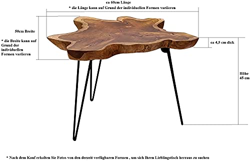 Dimensioni: circa: 45 x 55 x 45 cm (A x L x P) nei punti più larghi - le dimensioni variano a causa della forma unica. Piano del tavolo spesso circa 4,5 cm