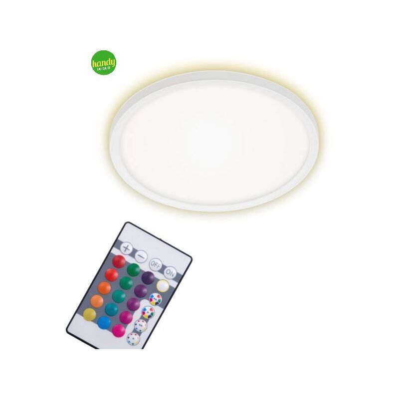 BRILIONER - LAMPADA DA SOFFITTO SLIM LED BIANCO DIAMETRO 293MM CON TELECOMANDO Grazie al design slanciato ed essenziale e alle numerose funzioni questo moderno pannello LED ultrapiatto in plastica di colore bianco si presta a molteplici utilizzi: lampada da soggiorno, per la camera da letto o per la camera dei bambini La funzione di cambio colore (RGB/W) e l'intensità dimmerabile per livelli consentono di adattare l'illuminazione ad ogni esigenza controllando le singole luci - anche comodamente dal divano utilizzando al telecomando incluso L'effetto di retroilluminazione indiretta integrata (backlight effect) crea un elegante punto luce e una piacevole atmosfera. Grado di protezione del pannello: IP20 La scheda LED integrata garantisce il risparmio energetico con una potenza di 15 watt, 1.850 lumen e una temperatura di colore di 4.000 Kelvin (bianco neutro) - lunga durata con autonomia media di circa 25.000 ore Dimensioni del prodotto: 293x28mm (DxH)
