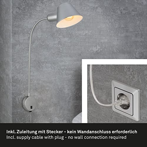 BRILONER - Lampada da letto flessibile, lampada da letto regolabile, interruttore a levetta, 1x presa E27 max. 10 Watt, cavo incluso, cromo opaco, 55 cm