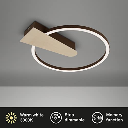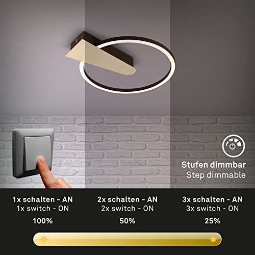 Briloner Lampada da soffitto a LED dimmerabile in 3 fasi, funzione memory, colore della luce bianco caldo, lampada da soffitto a LED rotonda, marrone oro, Ø29,5 cm