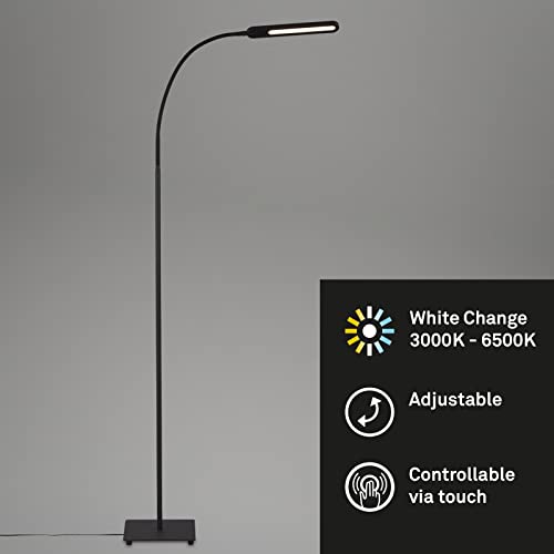 Briloner - Lampada da terra a LED, lampada da terra con funzione touch, dimmerabile a passi, controllo temperatura colore, lampada da ufficio 8 Watt, 600 Lumen, nero, 208 x 208 max. 1830mm (LxWxH)