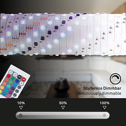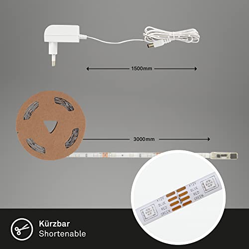 Briloner Leuchten 2267-090P - Striscia LED 3 m, 12 Watt, con telecomando, RGB, con cambio colore, autoadesivo, accorciabile, bianco, 3.000 mm (L)