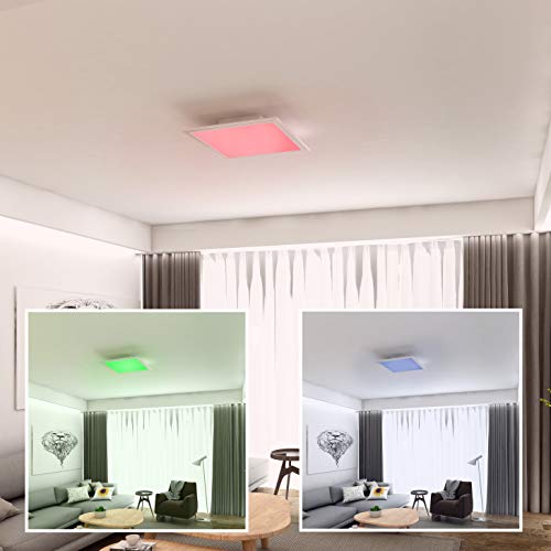 Briloner Leuchten 3031-016 Pannello LED Luminoso Quadrato a soffitto - Dimmerabile, Cambio RGB e Temperatura Colore con App e Telecomando, Bluetooth, 18 W, Bianco