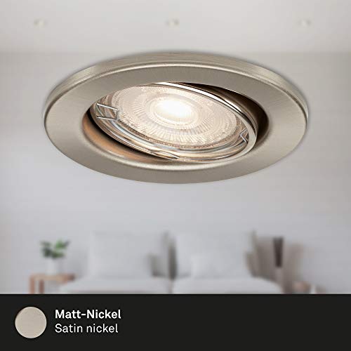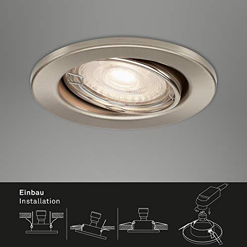 Briloner Leuchten - LED da incasso, set da 3 lampade da soffitto, modulo LED orientabile, ciascuno da 3,5 Watt, 350 Lumen, 3000 Kelvin, IP23, nichel opaco, 86 x 70 mm (DxH)