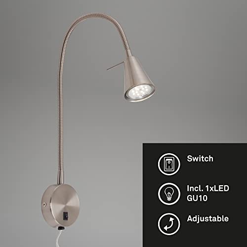 BRILONER Leuchten - Lampada da letto a LED, luce da letto incl. braccio flessibile, con pulsante on/off, 4 watt. 400 lumen, 3.000 Kelvin