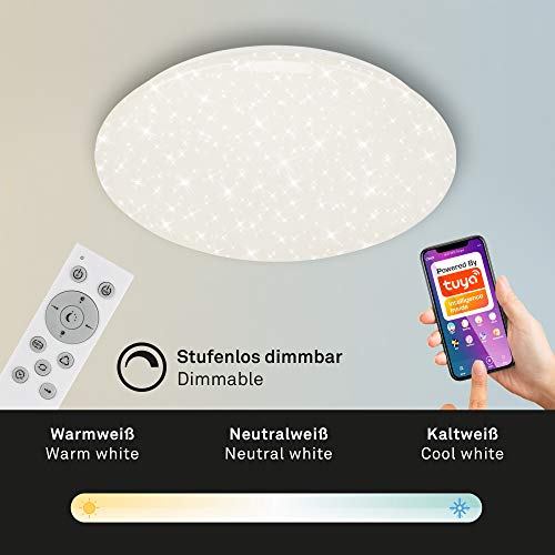 Briloner Leuchten - Lampada da soffitto a LED, WiFi, con decorazione a stelle, dimmerabile, RGB, controllo app, con telecomando, funzione timer, funzione memoria, 42 Watt, 3800 lumen, bianco, Ø 50 cm