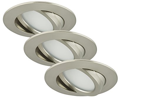 Briloner Leuchten - Lampade da soffitto a LED, set da 3, lampade dimmerabili, modulo LED orientabile, 5,5 watt ciascuno, 470 lumen ciascuno, 3.000 kelvin, IP23, nichel opaco, 82x28mm (DxH)