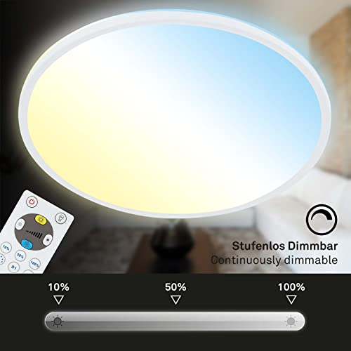 Briloner Leuchten Pannello LED, lampada da soffitto dimmerabile, lampada da soffitto con retroilluminazione, telecomando incluso, 18 Watt, 2400 Lumen, bianco, 293 x 28 mm (DxH)