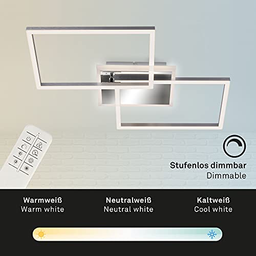 Briloner - Plafoniera LED, Lampada da Soffitto Dimmerabile, Telecomando, Controllo Temperatura Colore, Include Funzione Luce Notturna e Timer, 40 W, Cromo-Alluminio, 500 x 388 x 80 mm (LxWxH)