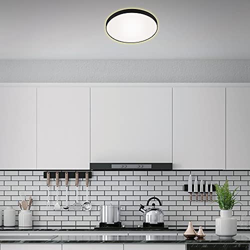 Briloner - Plafoniera LED, Lampada da Soffitto con Effetto Retroilluminato, 12 Watt, 1.200 Lumen, 3.000 Kelvin, Bianco/Nero, Ø 28.5 cm