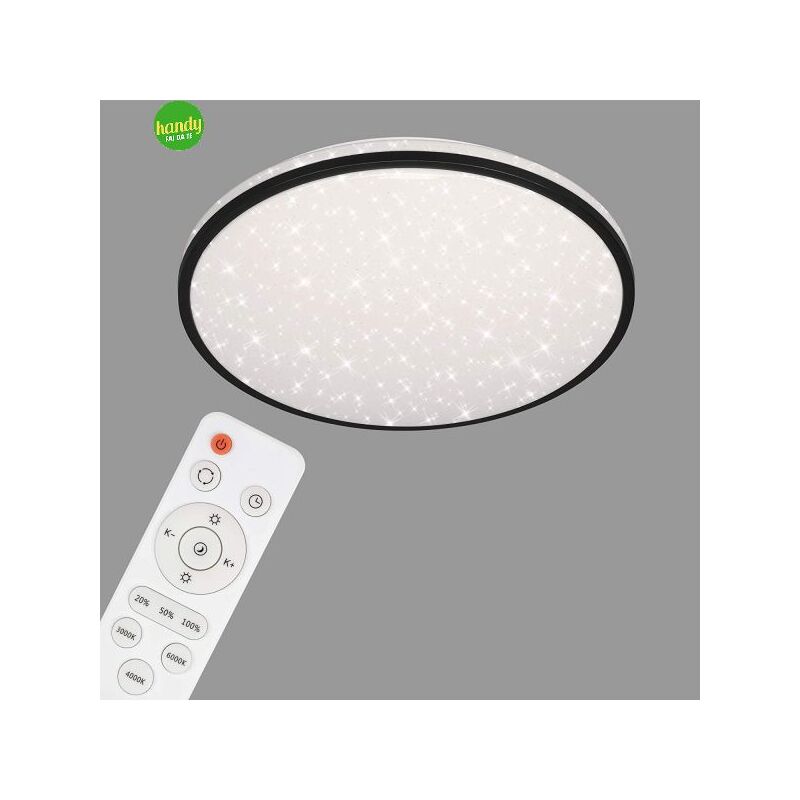 La plafoniera a led Skizo del brand Briloner è un prodotto originale che renderà gli ambienti della tua casa luminosi ed essenziali grazie al semplice design bianco con il bordo nero e il cielo stellato (sono visibili molti piccoli diodi che emettono luce, senza proiezione). Mediante l'utilizzodel telecomando avrai la possibilità di selezionare varie gradazioni di intensità, da 3.000 a 6.000 Kelvin. La scheda LED integrata permette di avereuna potenza di 4.400 Lumen ed una durata di 25.000 ore.