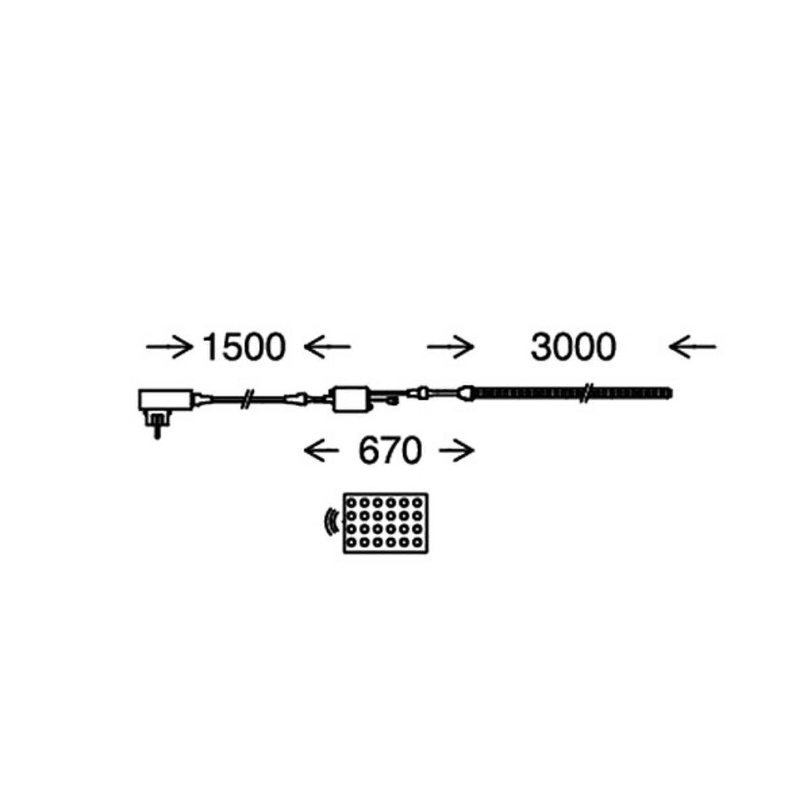 La striscia di LED RGB LED Strip Ora con telecomando fornisce un'illuminazione d'atmosfera all'aperto Un'illuminazione da sogno per esterni si ottiene con la banda flessibile RGB LED Ora. La banda di plastica misura tre metri, che può essere accorciata una volta a qualsiasi lunghezza. Oltre alla striscia LED Ora, la fornitura comprende una batteria, un telecomando e un cavo di alimentazione lungo due metri. Per l'illuminazione sono disponibili quattro diversi programmi di cambio colore e 16 colori singoli costanti, compreso il bianco. Inoltre, i colori della luce permanente possono essere oscurati in nove fasi. La luce di striscia a LED Ora può essere utilizzata per creare l'atmosfera giusta in un'accogliente area di seduta in giardino e per l'illuminazione d'accento della casa in giardino o della terrazza.