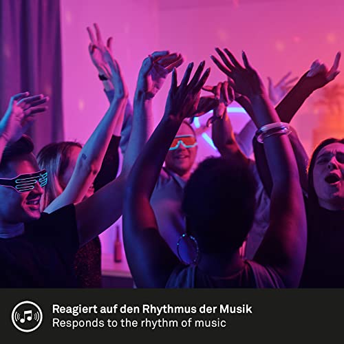 Un'altra caratteristica speciale è il sensore musicale, che alterna in modo intelligente i colori al ritmo della musica, creando così un'atmosfera di festa o permettendo di vivere un film in modo ancora più intenso. Qui è possibile scegliere tra 4 effetti